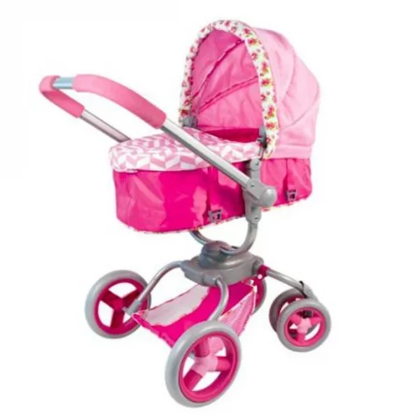 Carrito para muñecos de color rosa.