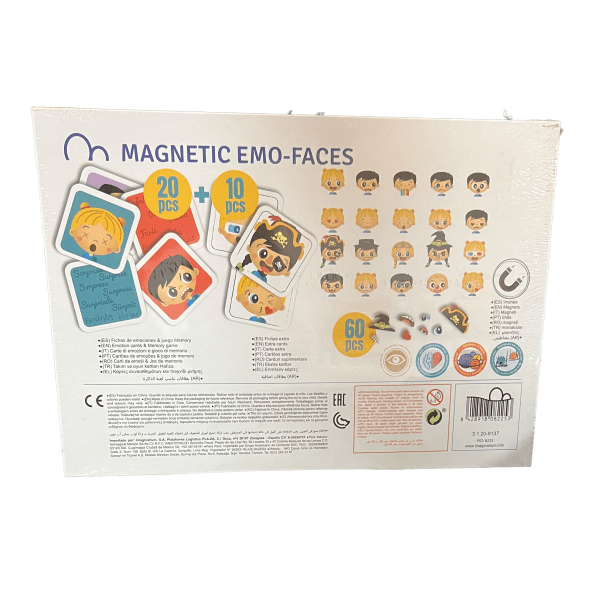 Incluye 60 piezas magnéticas, 20 fichas de emoción y 10 fichas adicionales.