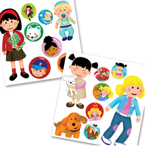 Pegatinas de vinilo en dos láminas para rodearle con sus muñecos favoritos.