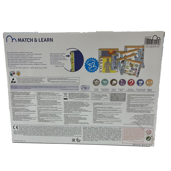 Juego de correlación y respuesta exitosa. 32 tarjetas educativas: suma, resta, geografía, anatomía, etc.