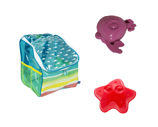 Tiene una rejilla en la parte inferior para que la arena no se acumule dentro y para que la ropita se seque antes.