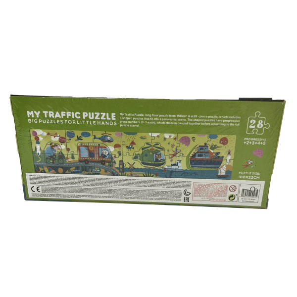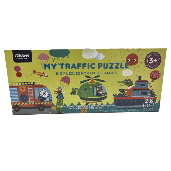 28 piezas de rompecabezas que incluye 4 puzzles que encajan en una escena.